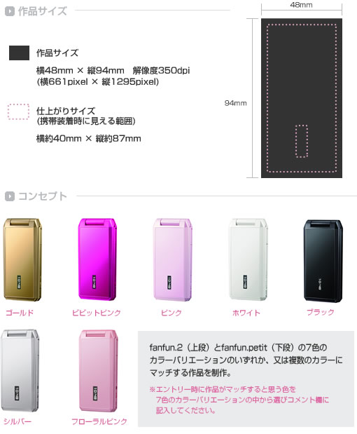 - 氏名・住所・連絡先電話番号・Eメールアドレス・クリエイターID・作品にマッチするカラーバリエーション が記載された用紙またはテキストファイル